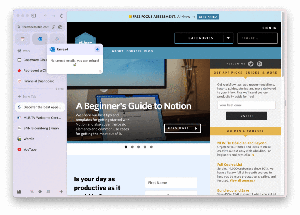 Arc and SigmaOS organize sessions, profiles, and spaces in a way that feels natural. Instead of juggling 20 windows, everything is grouped around tasks or projects.